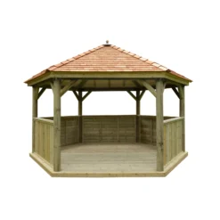 Forest Garden Furnished Timber Roof Hexagonal Gazebo, (W)4900mm (D)4240mm (Green Cushion Included)